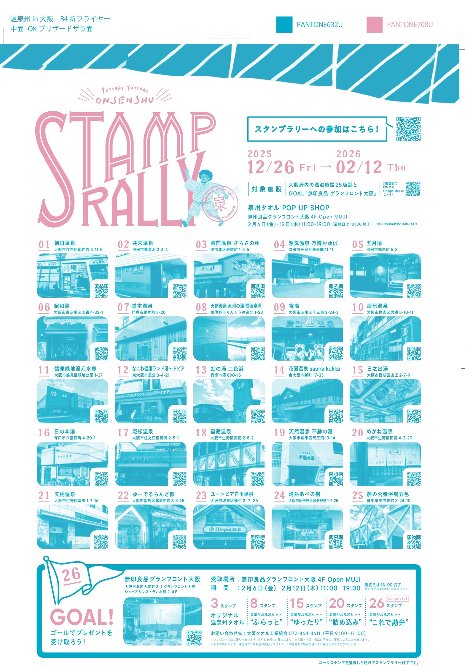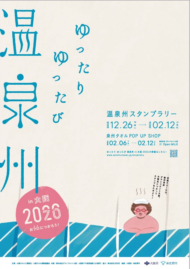 26(フロ)にちなんで大阪府内の26箇所を舞台に「オリジナルお風呂セットがもらえる、ゆったり ゆったび 温泉州 in大阪2026 スタンプラリー」を年末12/26フロの日より実施します。