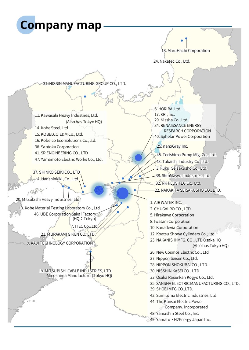 METI-Kansai has created a data collection that introduces examples of companies based in Kansai that have entered the hydrogen sector. Kansai is home to many hydrogen-related companies, and the technology and market potential in the hydrogen and fuel cell fields is believed to be very high. The technologies, products, and services of such companies are crucial for the further development of the hydrogen and fuel cell sector. We hope this document will serve as a reference for companies looking to enter the hydrogen field and for supporting organizations that assist them, and will also be of help to companies, universities, and research institutions seeking alliances with these companies.